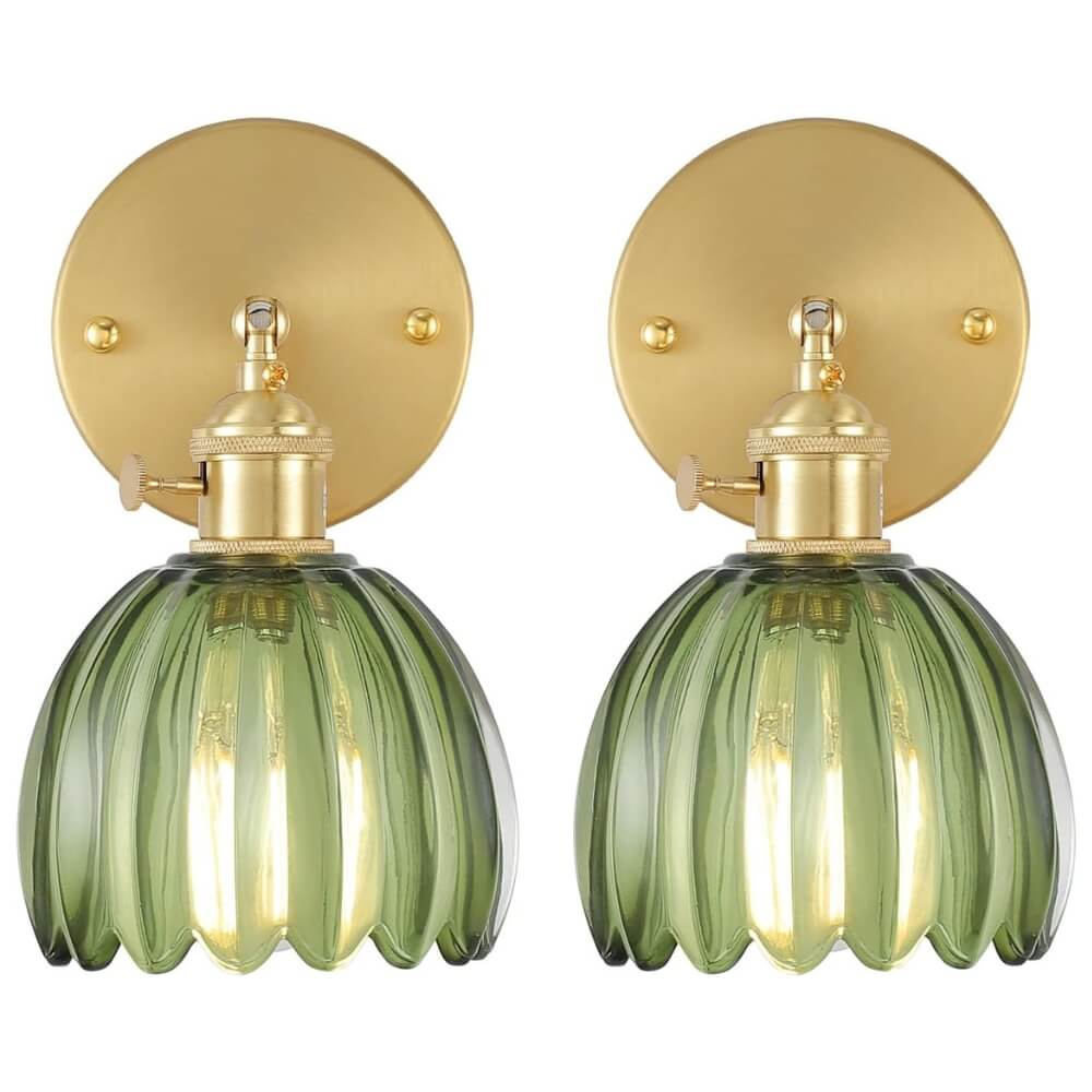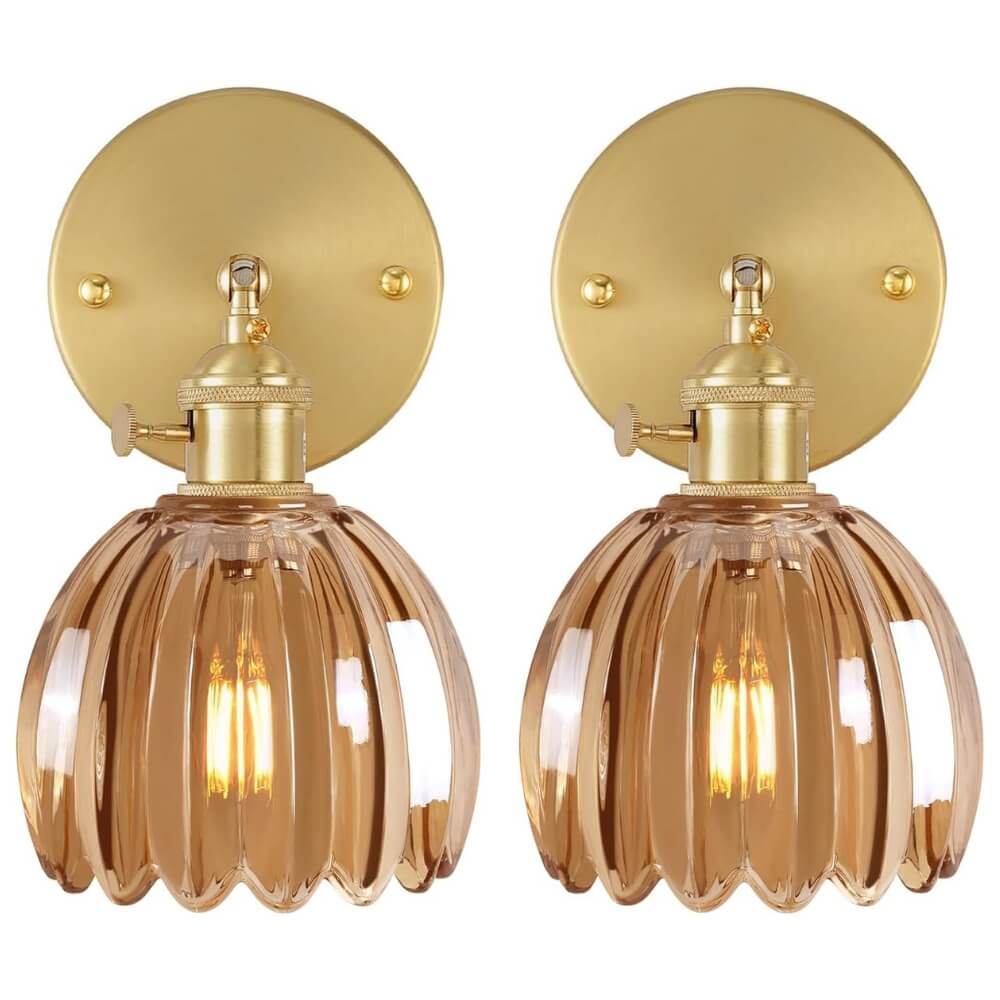 Vintage Tulip Glass Brass Sconces (Set of 2)