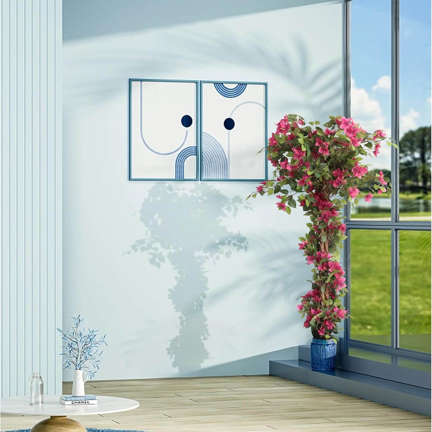 Designed with realistic textures and sturdy materials, this artificial bougainvillea tree remains lush and elegant for years, making it a timeless addition to any space.