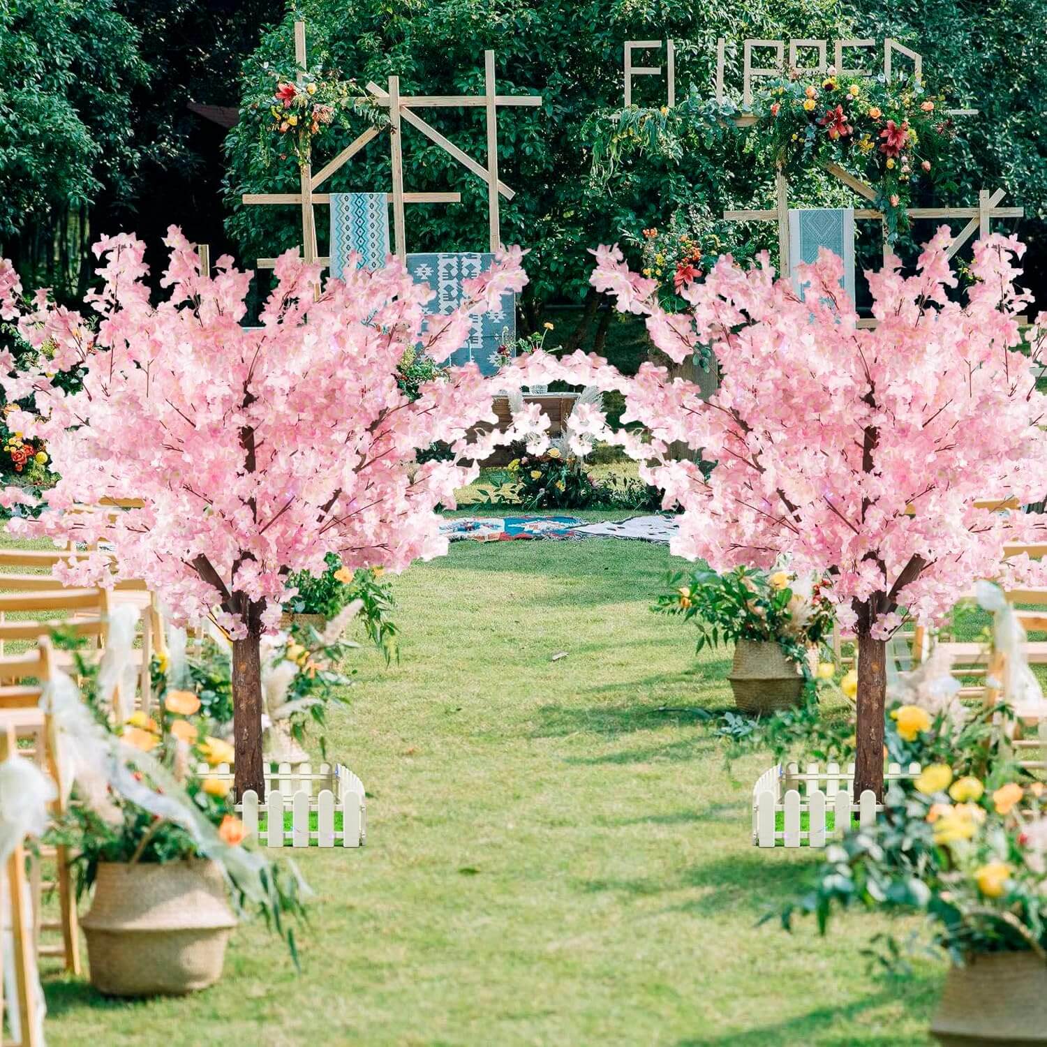 Delicate pink blossoms and lifelike foliage mimic the natural beauty of real cherry trees. The handcrafted details and optional faux bark wrapping add an authentic touch that captivates guests.