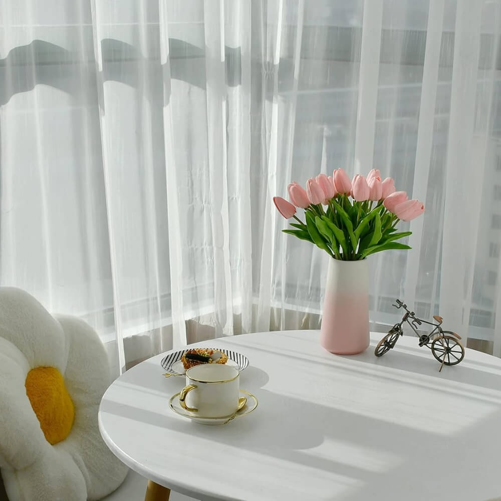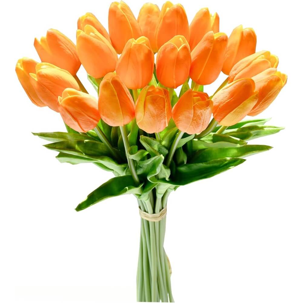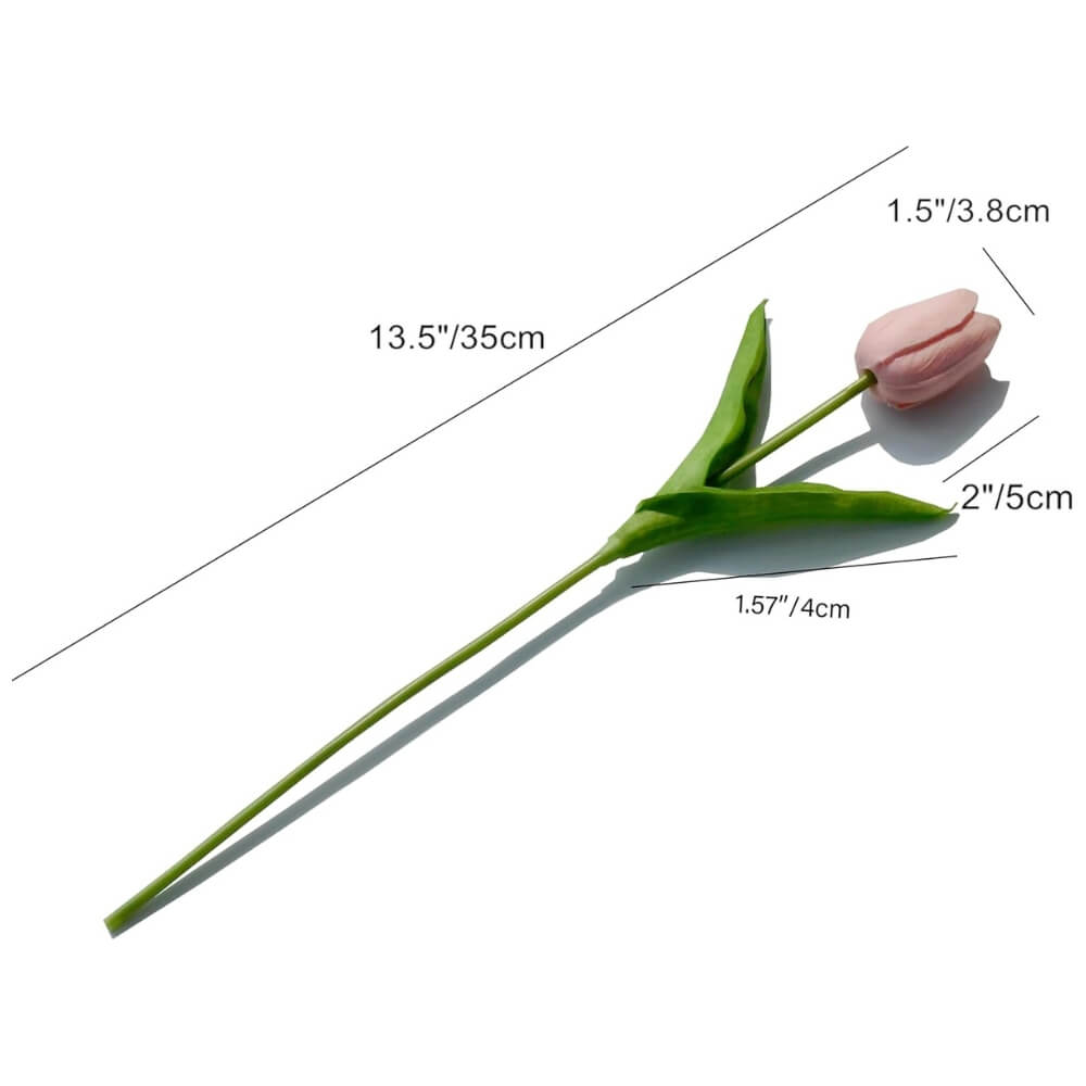 These flowers are designed to mimic fresh tulips and feature soft, flexible stems and naturally shaped petals. Place them in a glass vase with water for an even more authentic look.