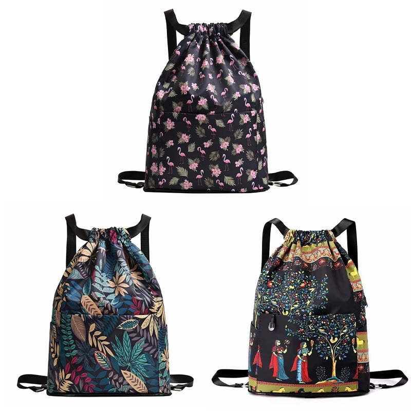 ✅【Detail Design】- One main pocket, two side pocket, and one front pocket can hold items. The multi-layer structures can aslo separate dry and wet. The drawstring design makes it easy to open and close.