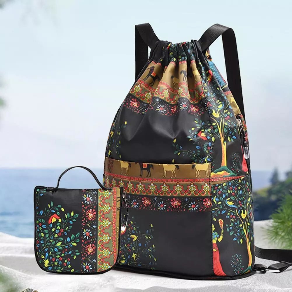 - 1×Drawstring Foldable Large Capacity Dry-wet Separation Travel Sports Backpack