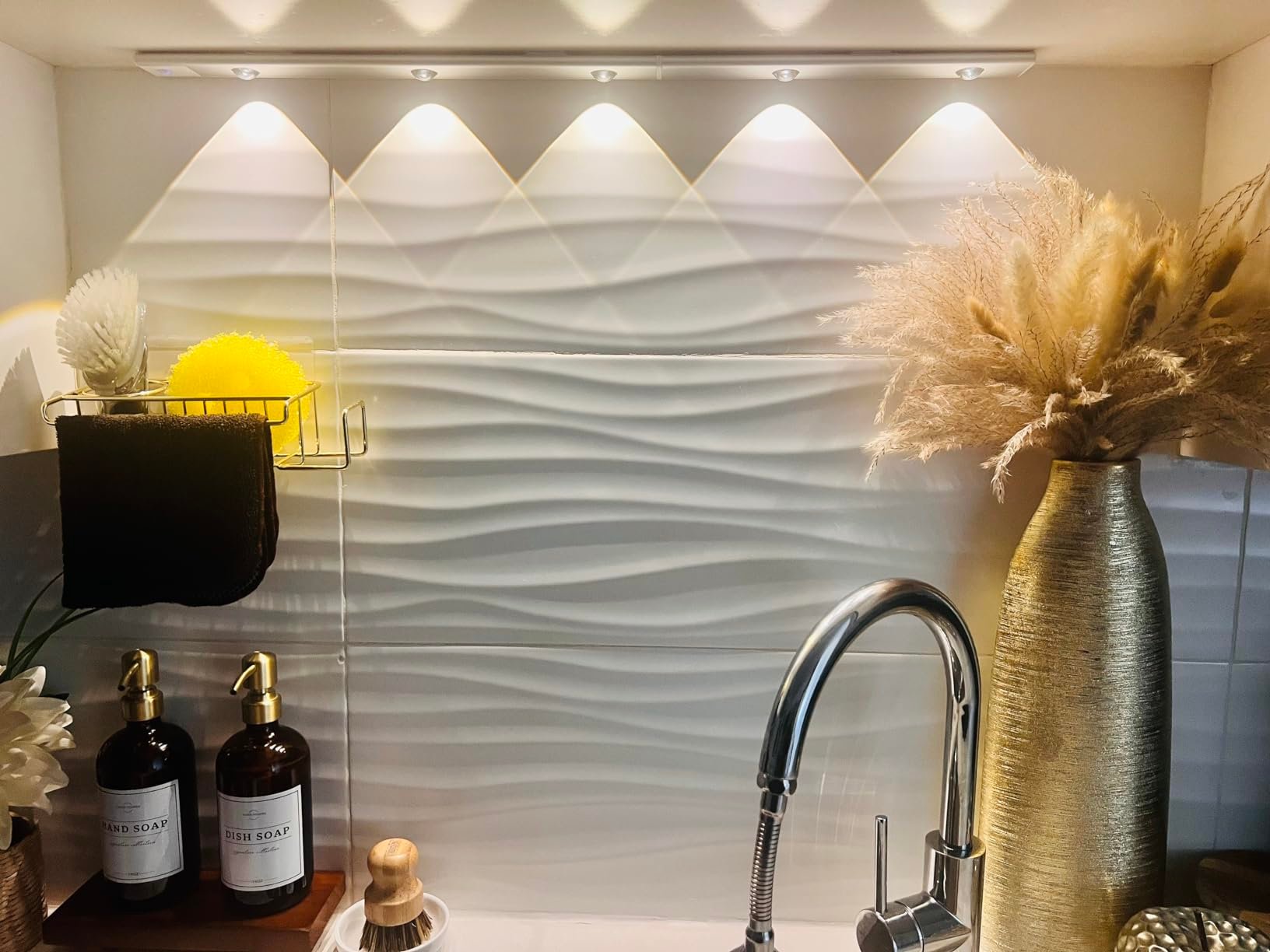 ❤️【3 Color Temperature and Multi-level Brightness Adjustable】Each under counter lights for kitchen has three color temperatures, 3000k warm white, 4000k natural white, 6000k cool white. 10%/30%/50%/80%/100% 5 fixed brightness, super bright, enough to light up dark corner.
