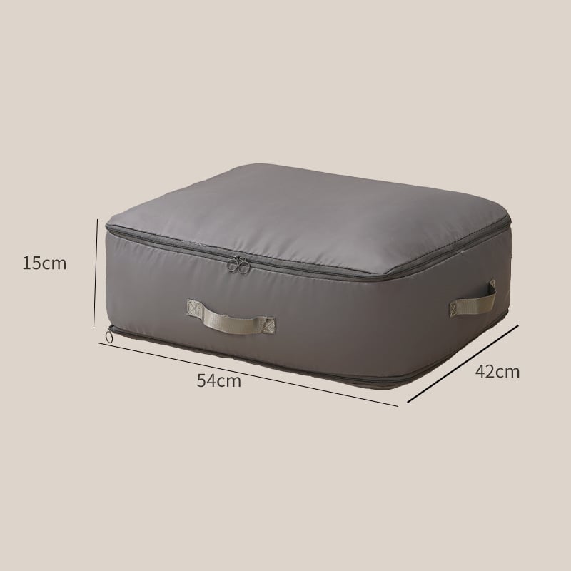 HOW TO MAKE THE COMPRESSION HAPPEN? - There Is a Extra Zipper Outside Of Our Compression Packing Cubes Which Can Be Zipped Up To Flatten The Cubes And Save The Space As Far As Possible. It Just Works Like a Vacuum Sealer. You Just Need To :1) Fold Your Clothes and Quilt, And Flatten Them 2)Pack Clothes In The Cubes And Zip The Normal Zipper. 3)Put A Finger On The Back Of The Zipper In The Space When Compressing The Packing Cubes In Case The Zipper Get Stuck In Fabric.