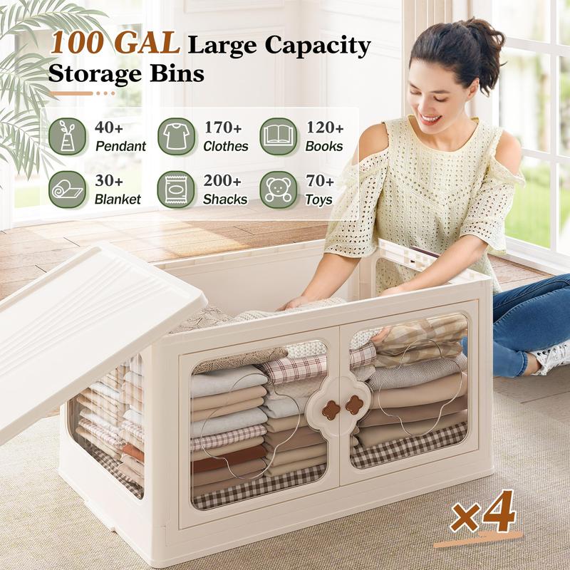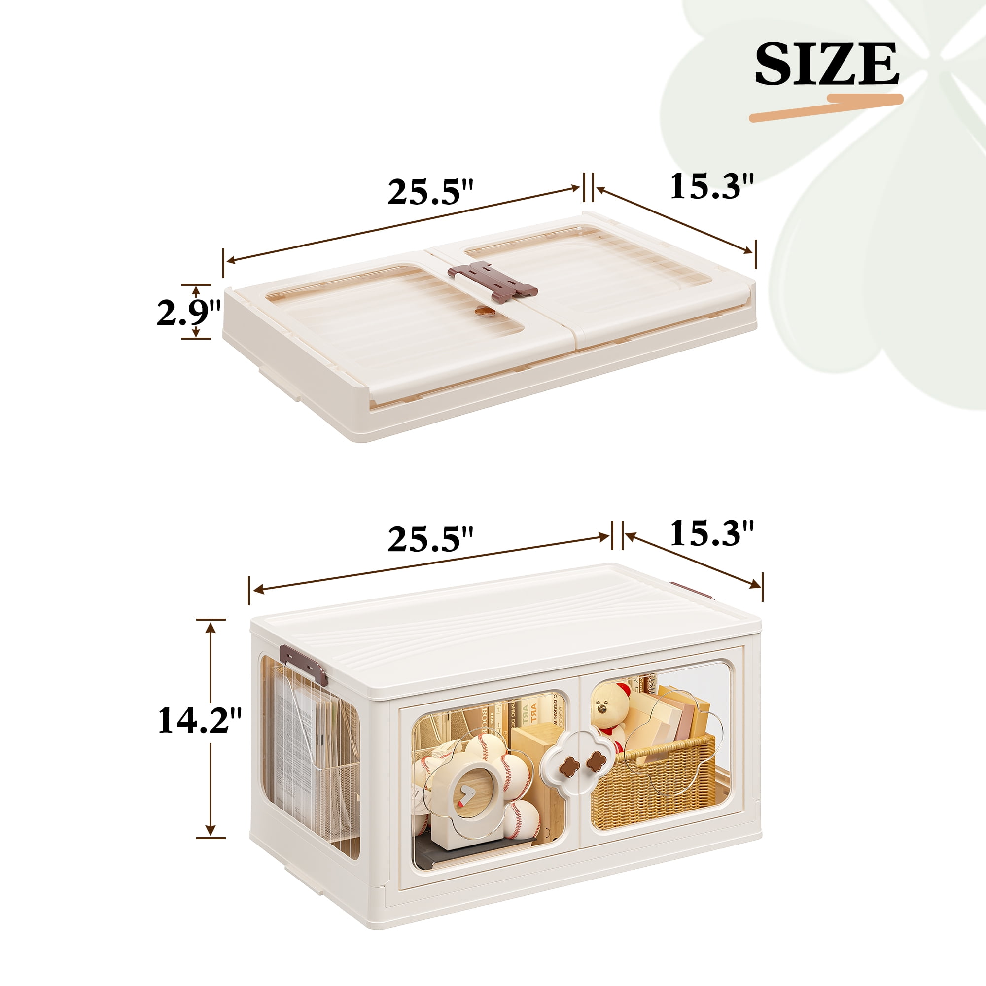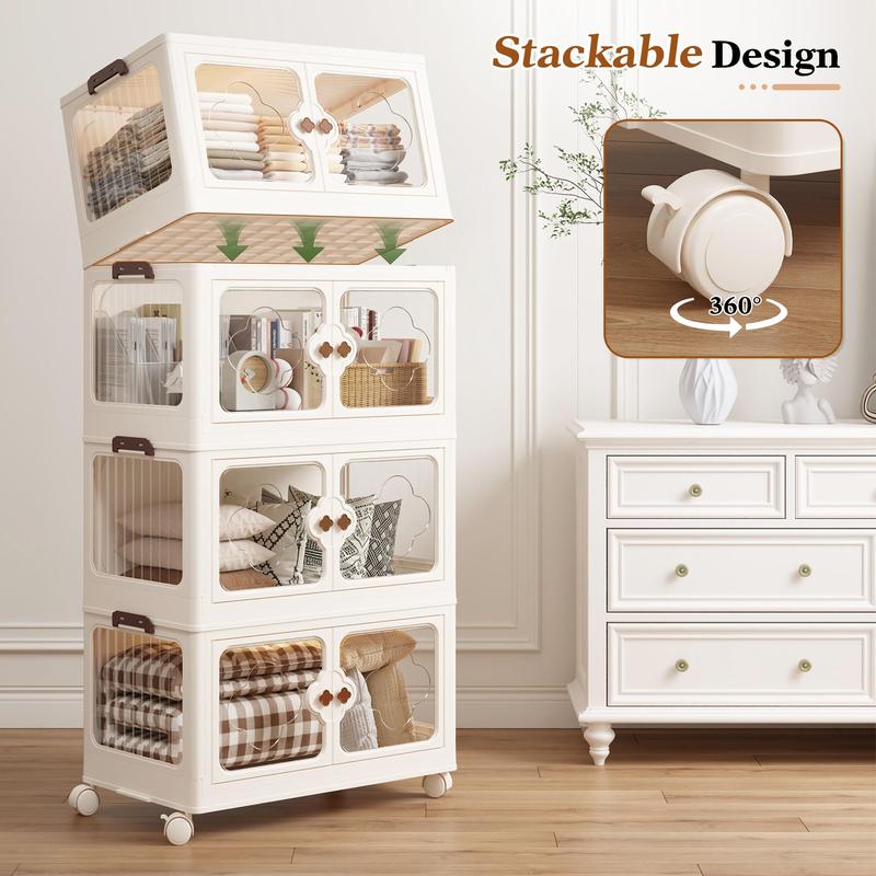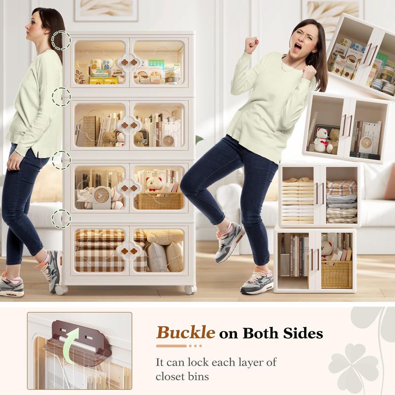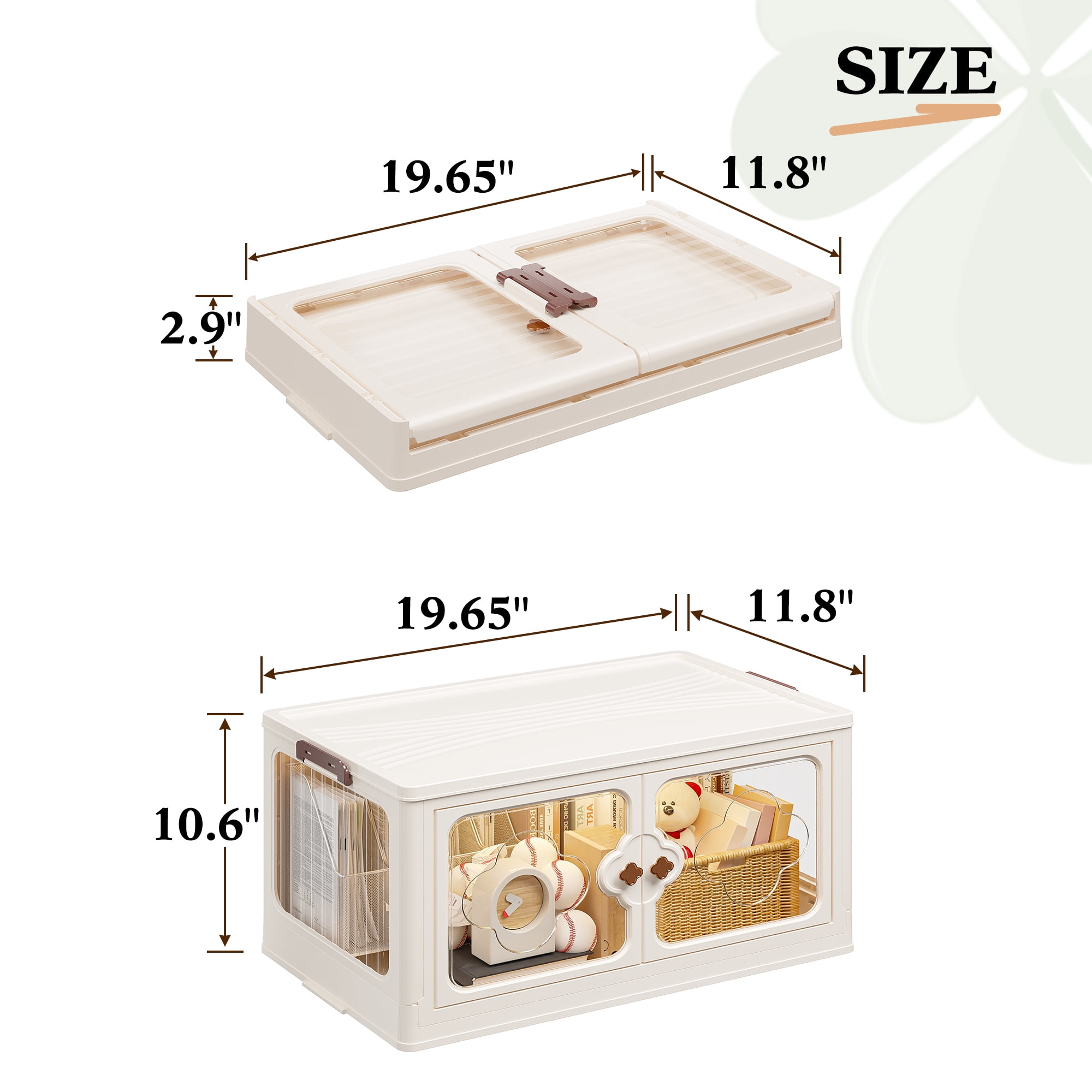 •【Plastic Storage Bins with Two Opening Ways】Double door folding large plastic storage bins, transparent visible Windows on three sides can clearly see the contents. You can open it from the top door and the stackable storage bins open front to quickly find your target item. The stackable storage bins have magnetic locks on the front to ensure that the doors do not open automatically to prevent items from falling out. The lovely four-leaf clover cabinet door design allows you to meet the closet organizers and storage at the same time the home dress up more fashionable.