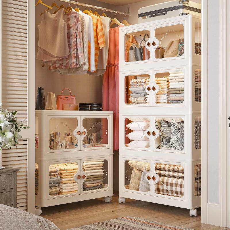 •【Stackable and Collapsible Storage Bins】The stackable design allows these plastic drawer storage to be easily folded and placed under your bed, closet or small corner of your bedroom when not in use, taking up no space and making your home more convenient and tidy. These large storage bins have special grooves on top that prevent items from slipping off when in use, while four wheels on the bottom allow you to move easily while cleaning.