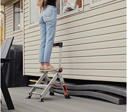 Get a leg up with the Little Giant Jumbo Step 2-Step Aluminum Ladder. Combining lightweight design with stability and strength (and boasting a safety bar), this ladder features 8.5" wide slip-resistant treads for added comfort during all your DIY projects and home improvement tasks