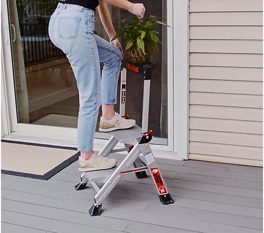 With the Jumbo Step's ultra-wide steps, it feels like walking up a staircase, not a ladder. It is made from lightweight, aircraft grade aluminum and its steps feature a safe, non-slip surface.
