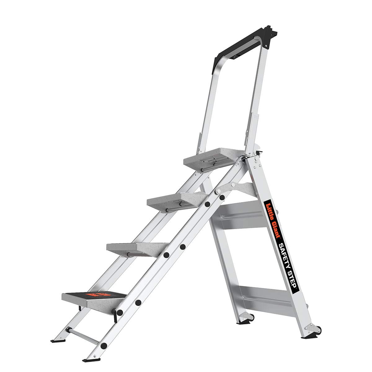 The Jumbo Step has a rotating safety handrail for added stability. This feature helps step stool users to feel more secure and confident while working at heights.