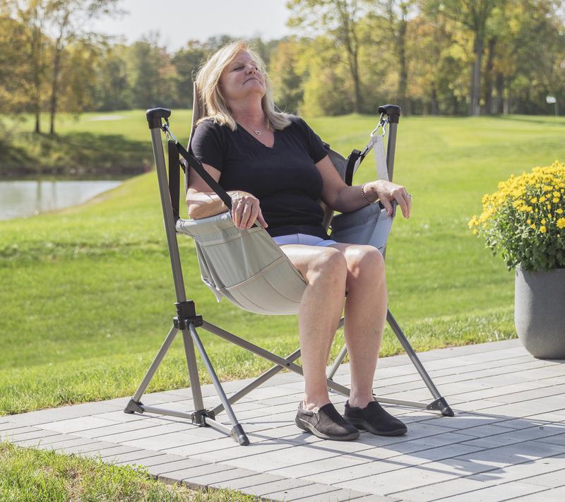 You're always ready to relax with the Timber Ridge portable folding hammock chair. Combining the comfortable sway of a hammock with portable convenience, this chair is a soothing seat for camping trips, beach days, or a cozy afternoon in your own backyard. The oversized padded seat with integrated metal bars ensures stability and ease, while a carrying bag makes transport simple. From Timber Ridge.