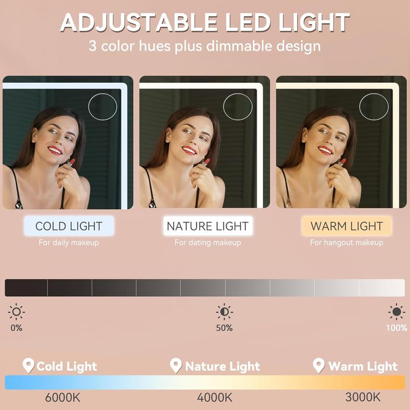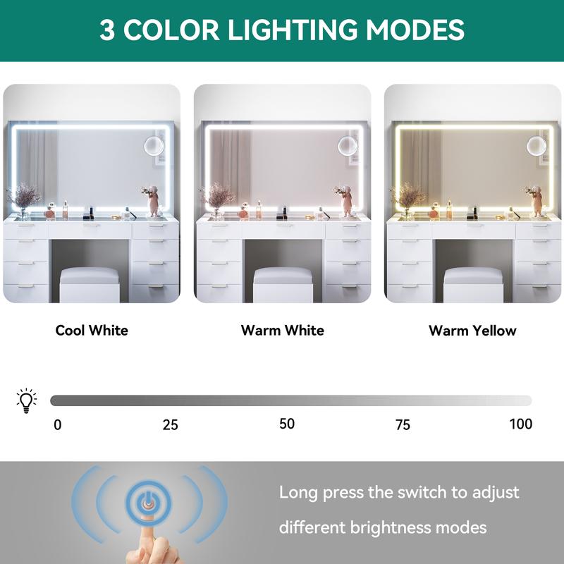 3-Color Lighting & Adjustable Brightness: This LED light features with 3 color modes (warm/natural/cool), and customizable brightness, this vanity table caters to all your lighting preferences, ideal for bedrooms, salons, or online content creation