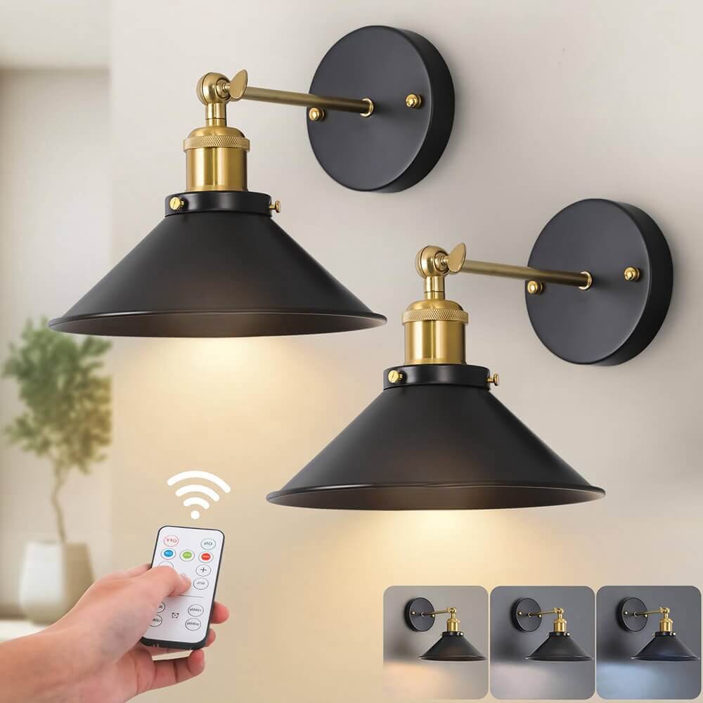 Manage your lighting effortlessly with the remote control, which operates all lights within a 20-foot range. Simplify your lighting experience with the American Retro Wireless Wall Lights, where style meets functionality.