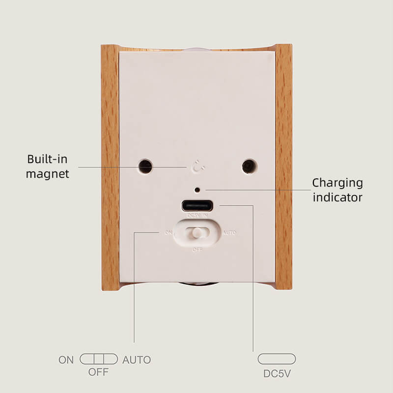 Enhance your décor effortlessly with our Magnetic Induction Wood Wall Light. Its modern minimalist design seamlessly blends into any decorative style, while the wood grain appearance adds a touch of sophistication without overwhelming your space.