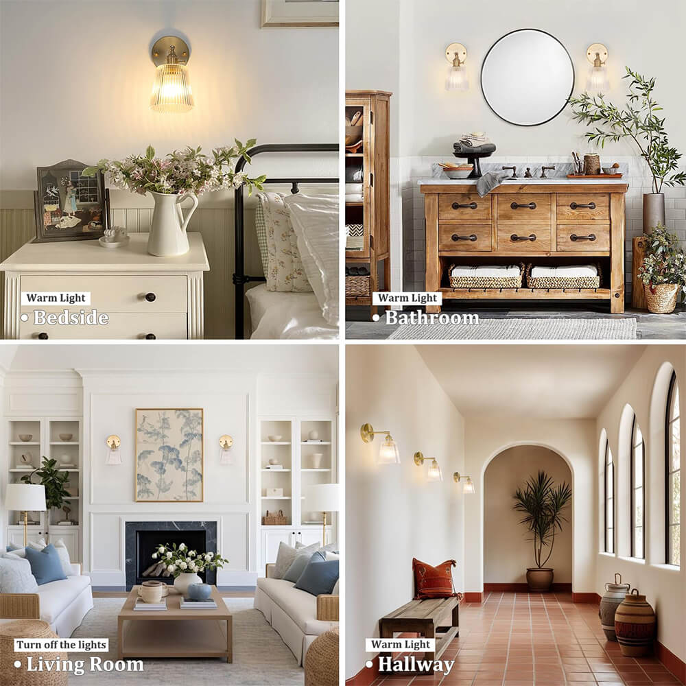 Transform your space with the Striped Glass Vintage Wall Light, designed to create a warm, inviting atmosphere. The clear glass texture allows light to pass through beautifully, softening it for a comfortable and relaxing ambiance that enhances any room.